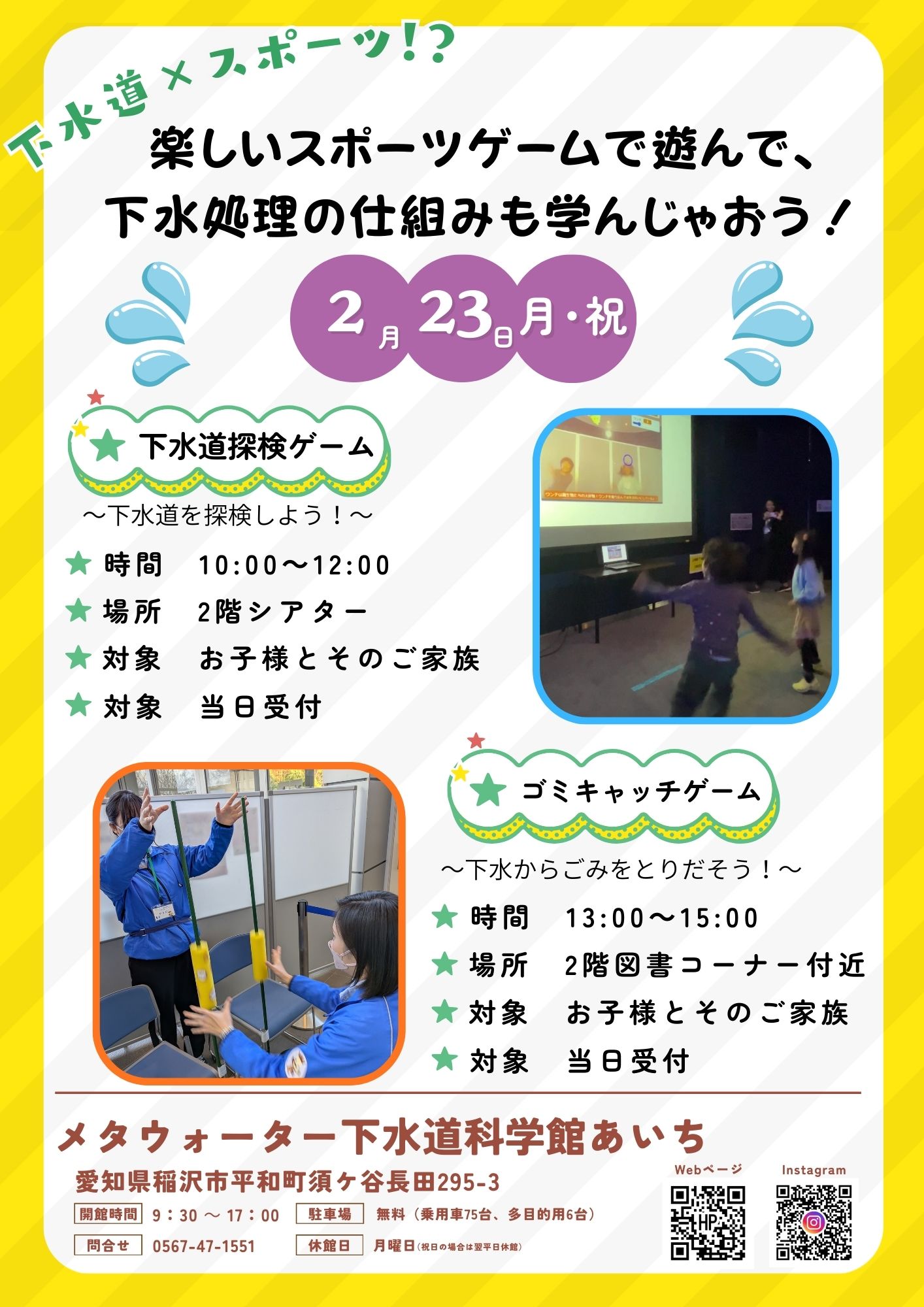 2026年 2月 23日(月) ①10:00~12:00 ②13:00~15:00メタウォーター下水道科学館あいち親子向け
