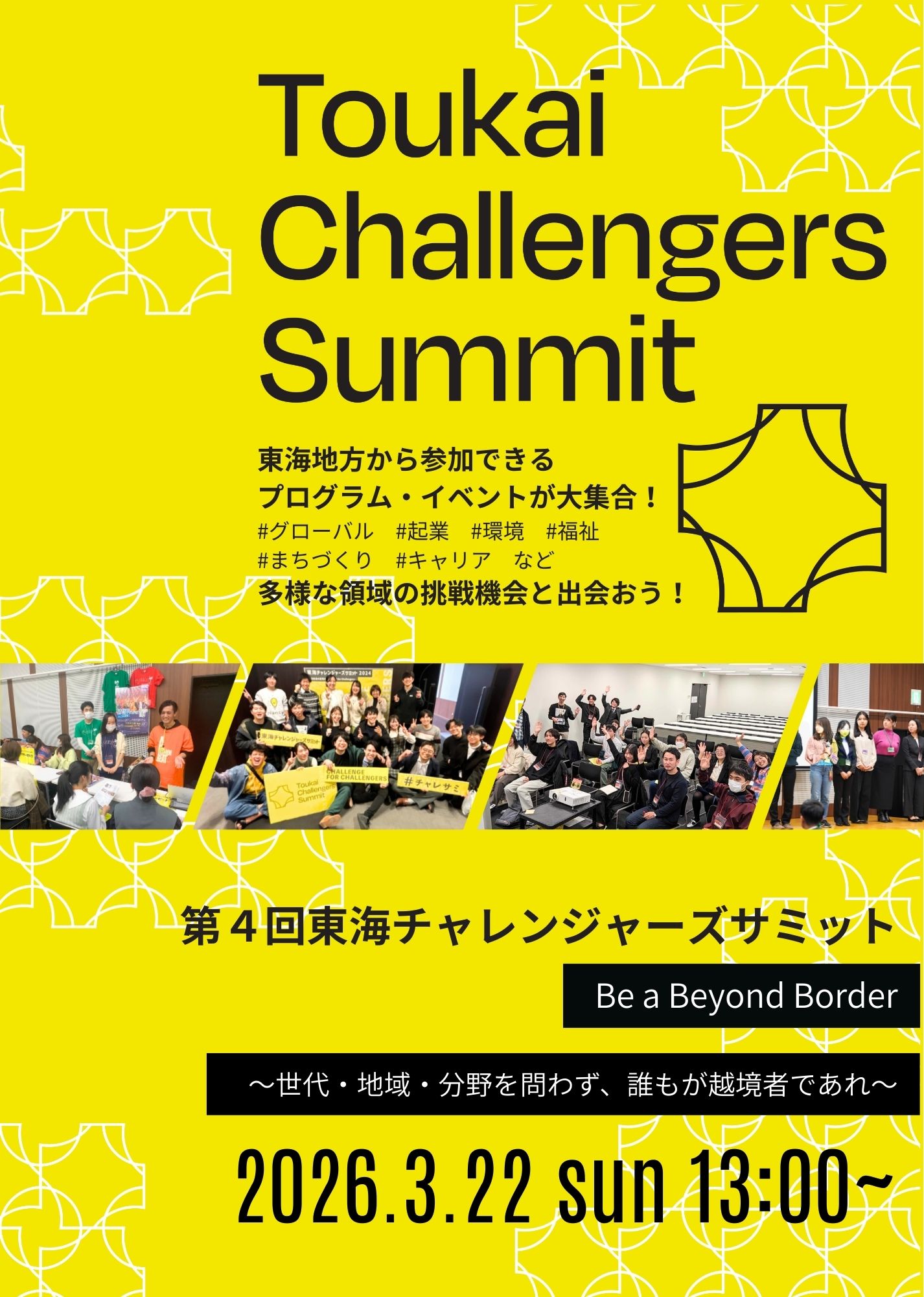 東海チャレンジャーズサミットは、 東海地方じゅうの、プログラム・イベント・インターンシップなどの機会が一つの場に集結する稀有な場です。 2025年度の参加者からどのような経験が得られたのかを聞けたり、 そのようなプログラムを企画・運営している方々と直接話せたりします。 どんな人が集まるか分からず不安な方、 大勢が集まるイベントが苦手な方、 でもちょっと、何か新しいことに挑戦してみたい方。 安心してください。周りはそのような想いの方ばかりです! 運営一同、皆様のご参加をお待ちしております! ▼お申込み・詳細はこちらから▼ https://challengers-summit4.peatix.com/ 主催者情報 主催:日本青年国際交流機構 共催:愛知県青年国際交流機構、(一財)青少年国際交流推進センター 後援:内閣府、独立行政法人 国際協力機構(JICA)中部センター、愛知県、愛知県教育委員会、名古屋市教育委員会 協力:文部科学省 トビタテ!留学JAPAN 運営事務局:チャレンジャーズサミット実行委員会