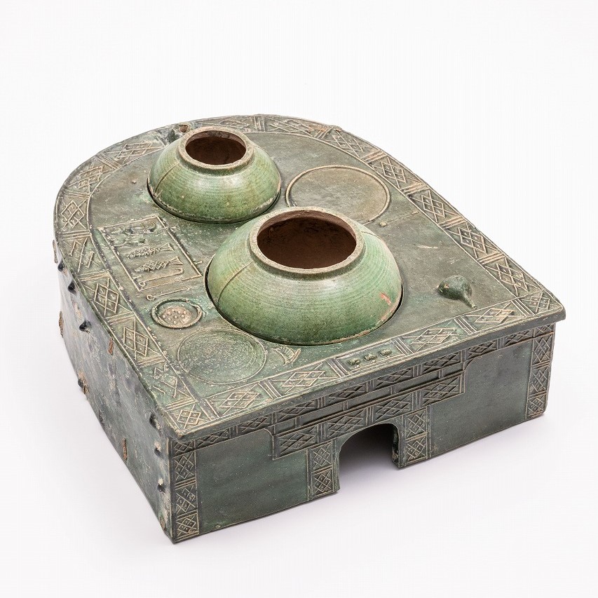 本展では、中国・漢代(前3-後3世紀)から明代(14-17世紀)におよぶ愛知県陶磁美術館の明器コレクションに一部当館の収蔵品を加えた約50点を展示します。井戸には水を汲むための釣瓶(つるべ)を引き上げる滑車がつき、カマドの台には魚などの食料品や調理器具が型押しされ、トイレには穴が開けられています。建築明器のマストアイテムであるこれらを含め、豊かな来世の暮らしを描いた造形をとおして、古代中国の生活情景に触れながら、秘めたるやきものの魅力に迫ります。