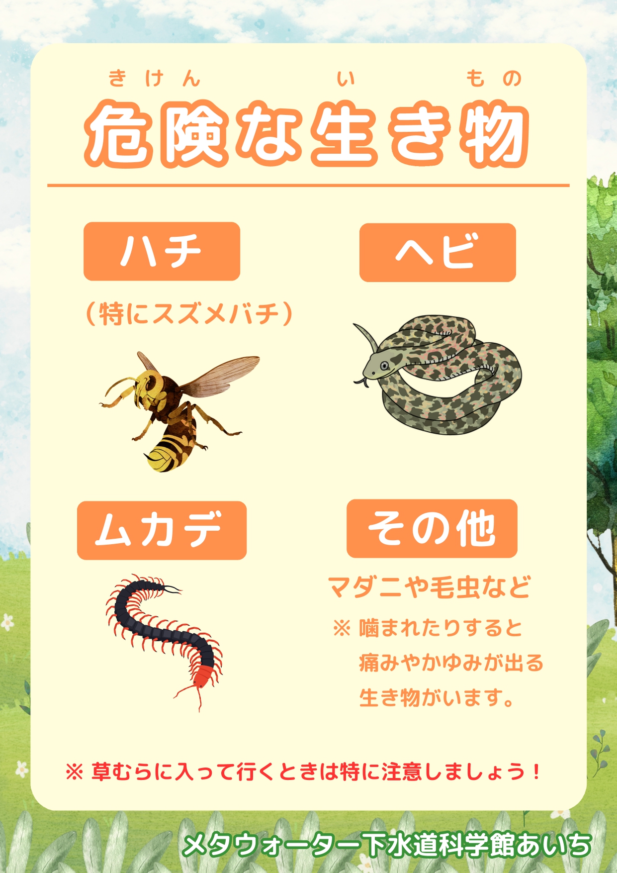 ※虫よけ対策、汚れてもよい服装・靴でお越しください。