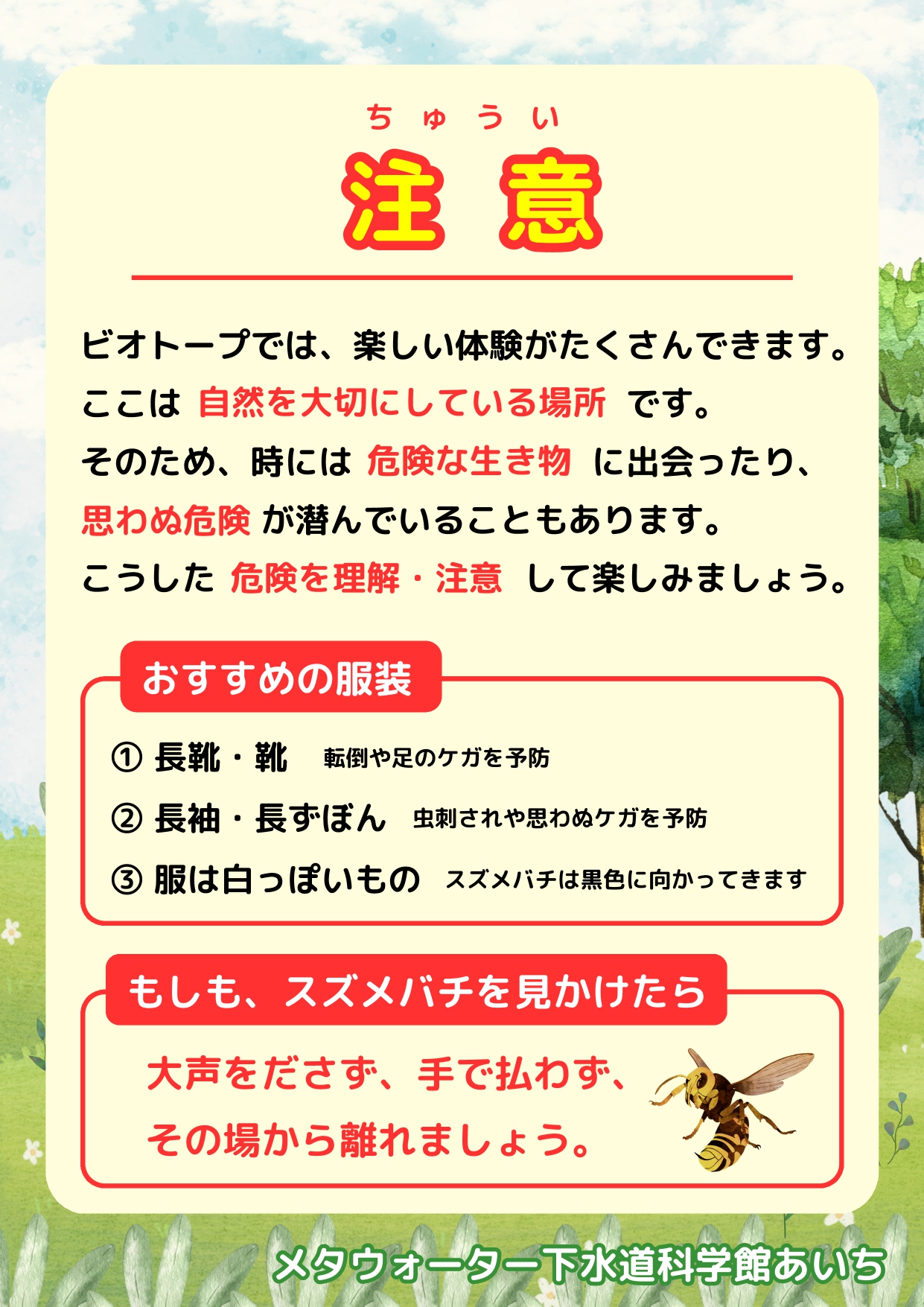 <ビオトープを楽しむ際の注意>