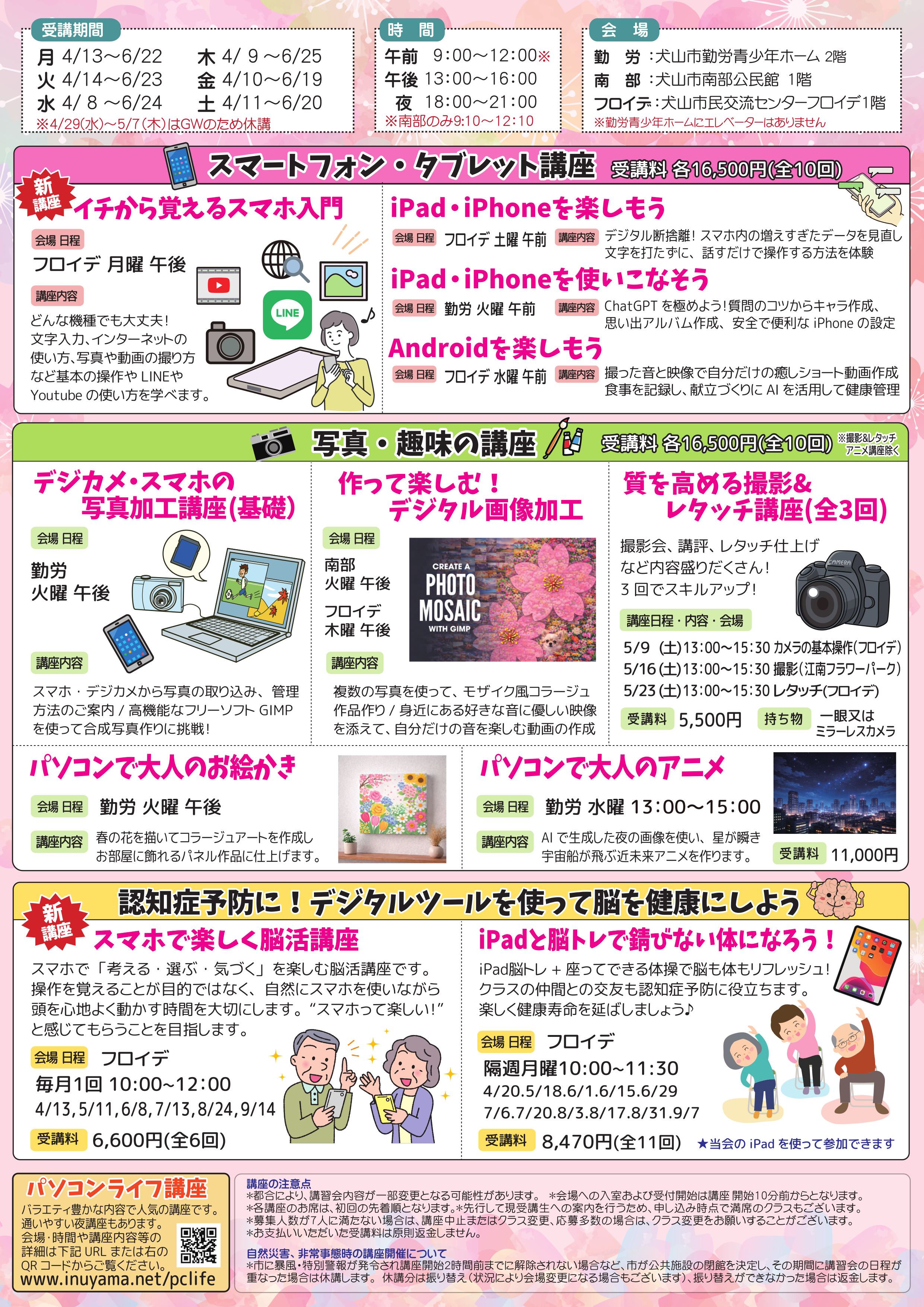 - 2026年 4月 11日(土)から2026年 6月 20日(土) 9:00~12:00