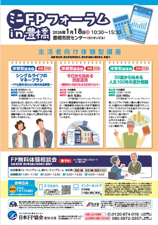 日本FP協会愛知支部主催『ミニFPフォーラムin豊橋』を開催いたします。