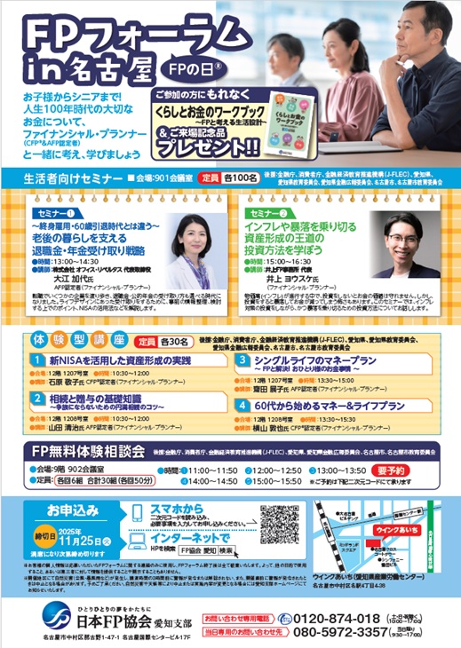 日本FP協会愛知支部主催『FPの日®FPフォーラムin名古屋』を開催いたします。