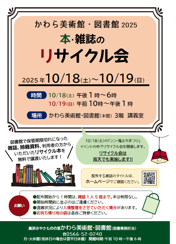 市内のイベント「シン鬼みちまつり」にあわせて「本・雑誌のリサイクル会」を開催します!