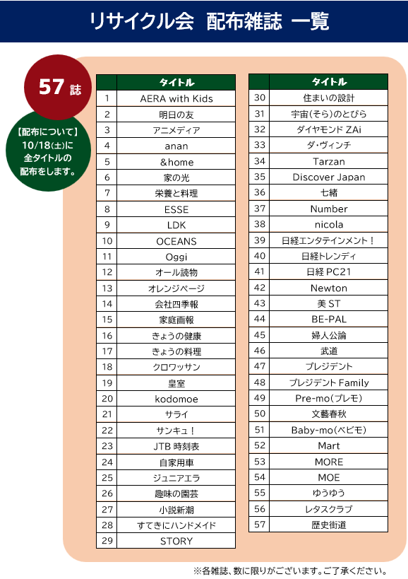 ※雑誌について、今年は日にちを分けずに18日から全タイトルを一斉に配布します。